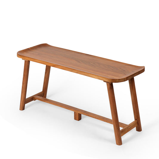 This minimalist solid wood bench is designed with a sleek open-frame base and smooth tabletop....