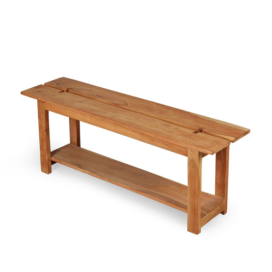 This handcrafted solid wood bench offers a wide tabletop and slatted lower shelf for practical...