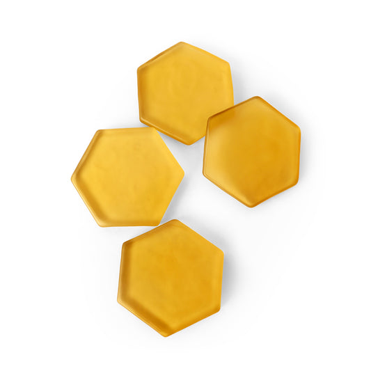 Material - Resin Colour - Yellow Bright yellow hexagon-shaped resin coasters with a sleek finish....