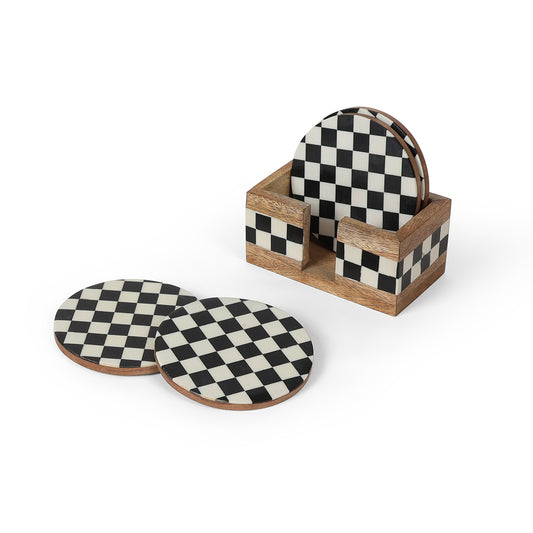 Colour - Black & White Stylish black and white checker pattern resin coasters crafted for...