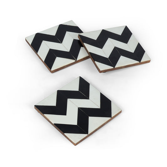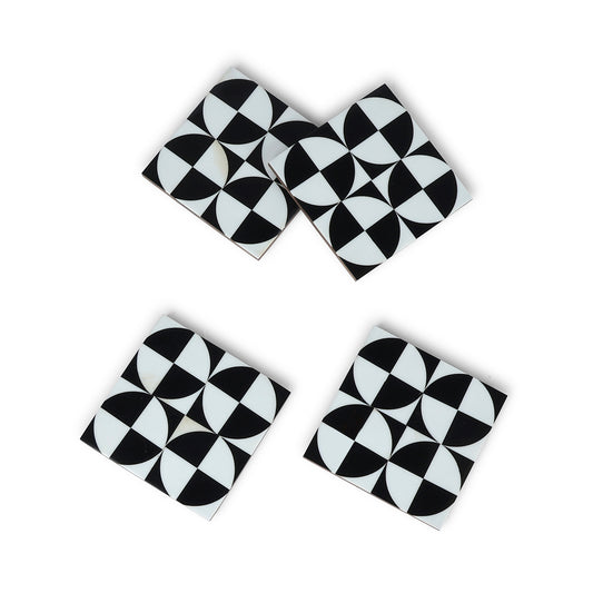 Colour - Black & White Bold black and white geometric patterned square coasters designed for modern...