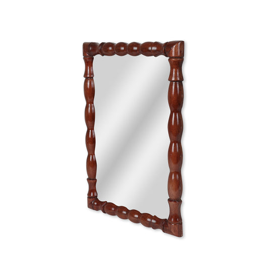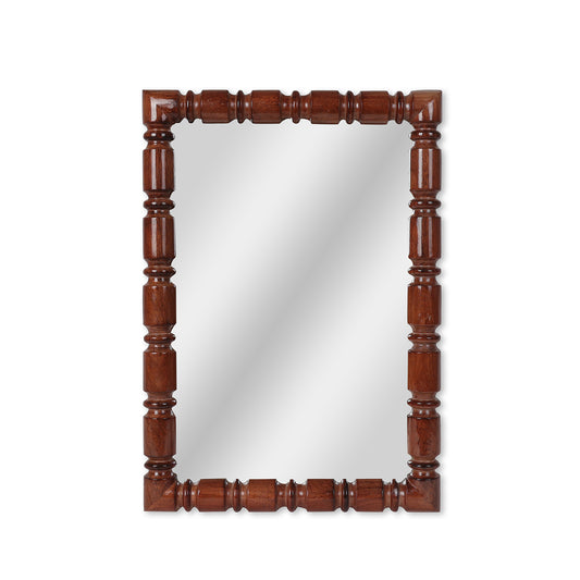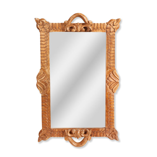 Make your wall stand out with this hand-carved rustic wooden mirror featuring bold side accents...