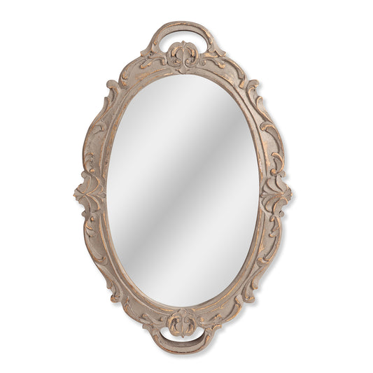 This vintage oval wall mirror features an antique-style distressed frame with ornate accents. A statement...
