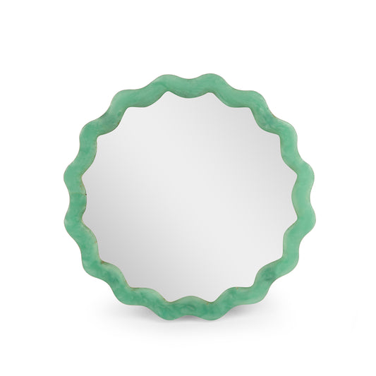 Freshen up your décor with this green scalloped round wall mirror. The wavy frame adds...