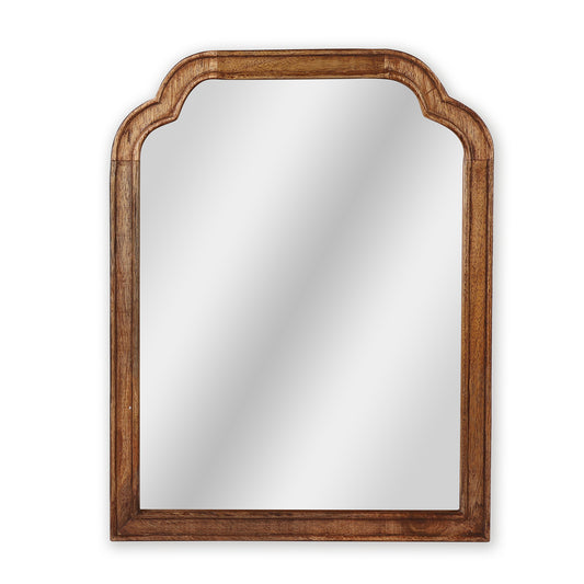 This sculpted arch wall mirror features subtle curves and a warm wooden finish for a...