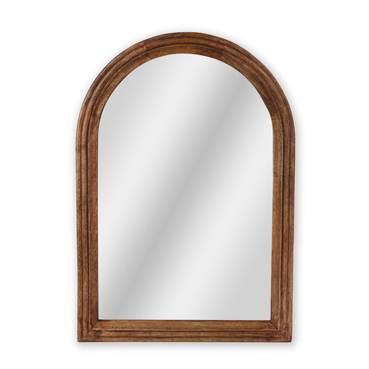 A ribbed arched wooden wall mirror with layered detailing that adds depth without overpowering the...