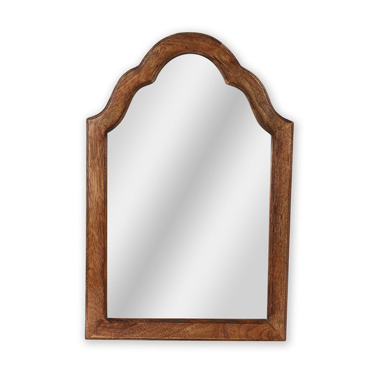 A tall arched wooden wall mirror designed to make rooms feel larger and brighter. Ideal...