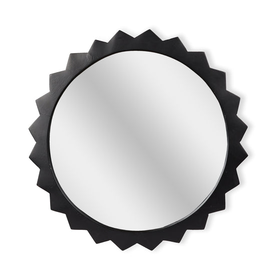 A bold sunburst-style black wall mirror made for statement interiors. Place it above a console...