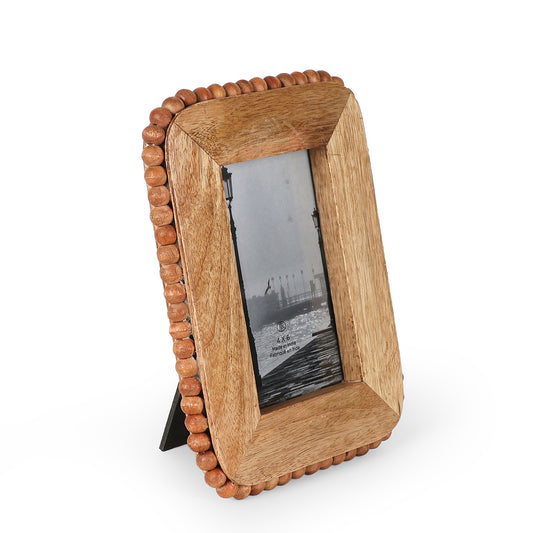 This natural wood frame with bead detailing adds an easy boho charm to any corner....