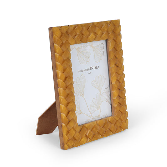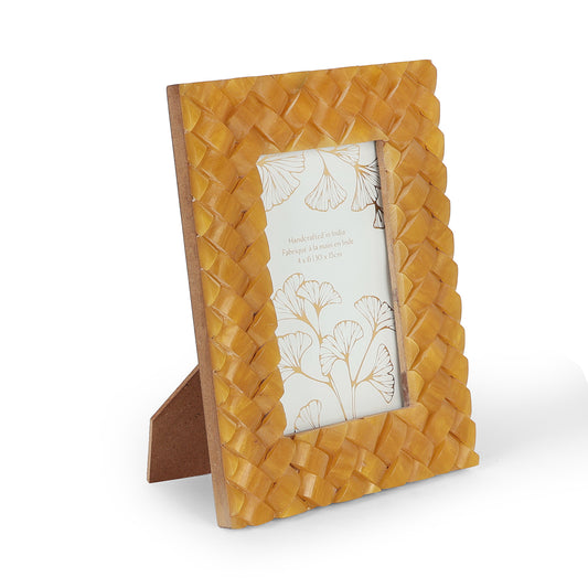 A bold woven texture in a rich mustard tone that adds instant character to shelves...