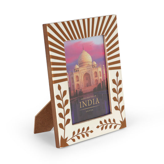 Featuring a Taj Mahal-inspired insert and a warm striped border, this decorative photo frame adds...