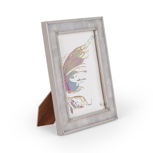 Elegant pearly inlay with a sleek metallic border for a refined, luxe look. Complements modern,...