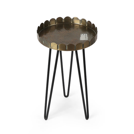 Raised brass tray-style top with a sturdy black metal stand—perfect for planters, candles, or décor...