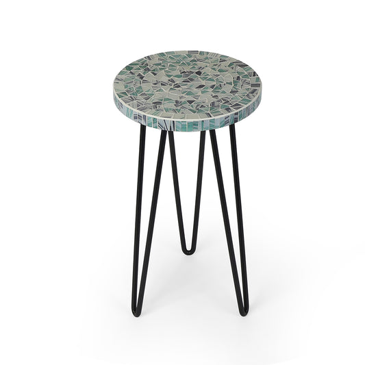 Round mosaic-top plant stand with sturdy black metal hairpin legs for a modern look. The...