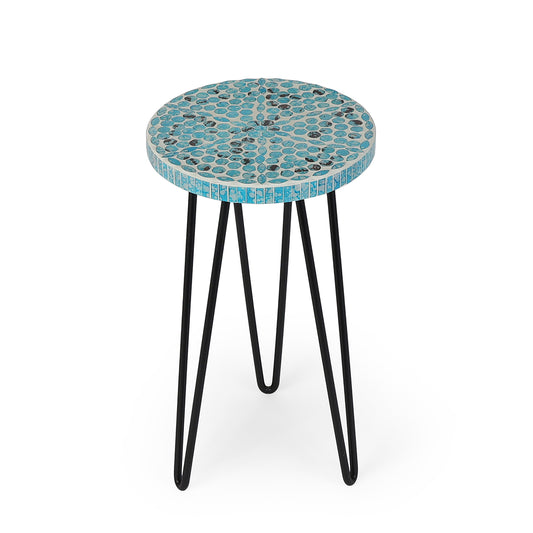 Handcrafted blue mosaic top with a strong black metal base—ideal indoor plant stand for modern...