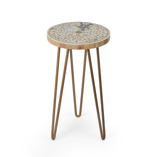 Featuring a decorative patterned top and antique gold metal legs, this plant stand adds a...