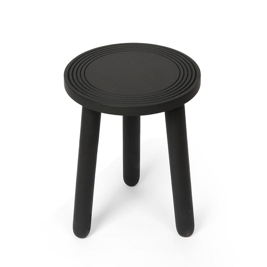 A sleek black plant stand with a grooved circular top and solid legs for everyday...