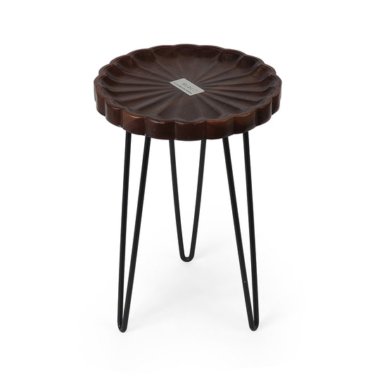 Hand-carved wooden top paired with sleek black hairpin legs makes this plant stand a perfect...