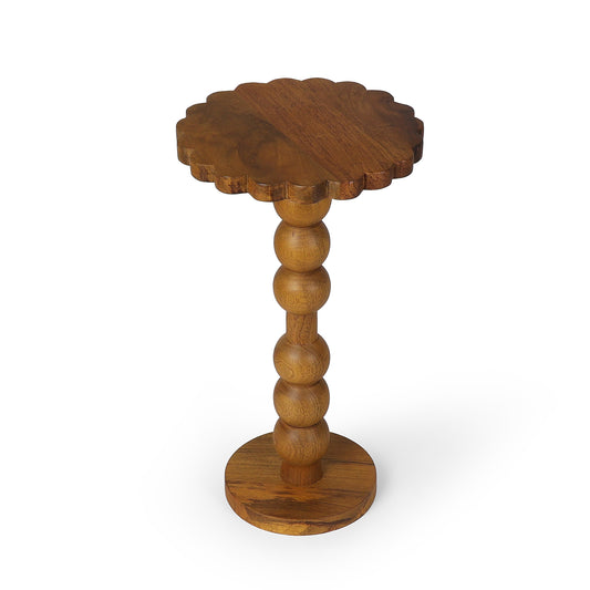 Featuring a scalloped wooden top and sturdy metal legs, this plant stand adds a soft...
