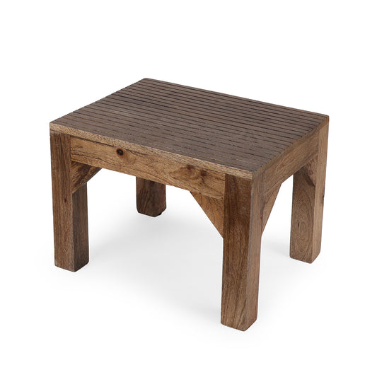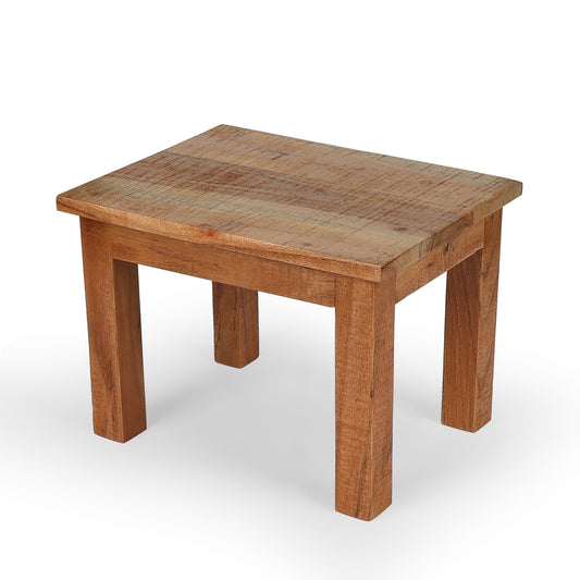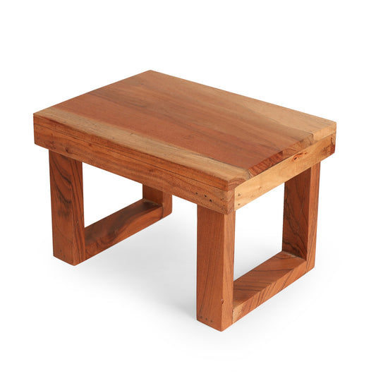 Solid wood low stool featuring a bold open-frame leg design and thick top for strength....