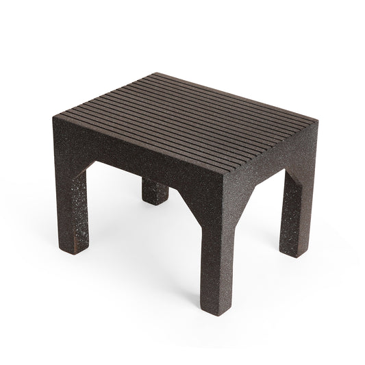 Modern accent stool with a ribbed top texture and bold stone-black finish for a premium...