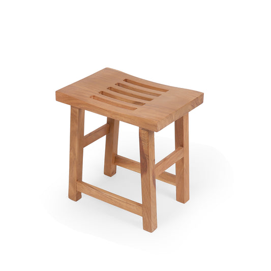 Practical solid wood stool with slatted top design for strength and airflow. Suitable for seating,...