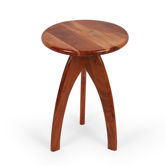 Stylish solid wood tripod stool featuring a round seat and three sculpted legs. Perfect for...