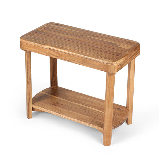 This solid wood side table features a slatted tabletop and a spacious lower shelf for...