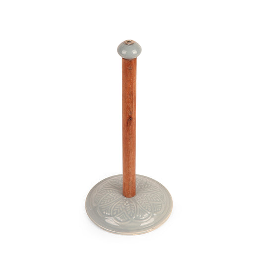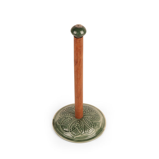 Refresh your countertop with this green floral ceramic base tissue holder. The smooth wooden pole...