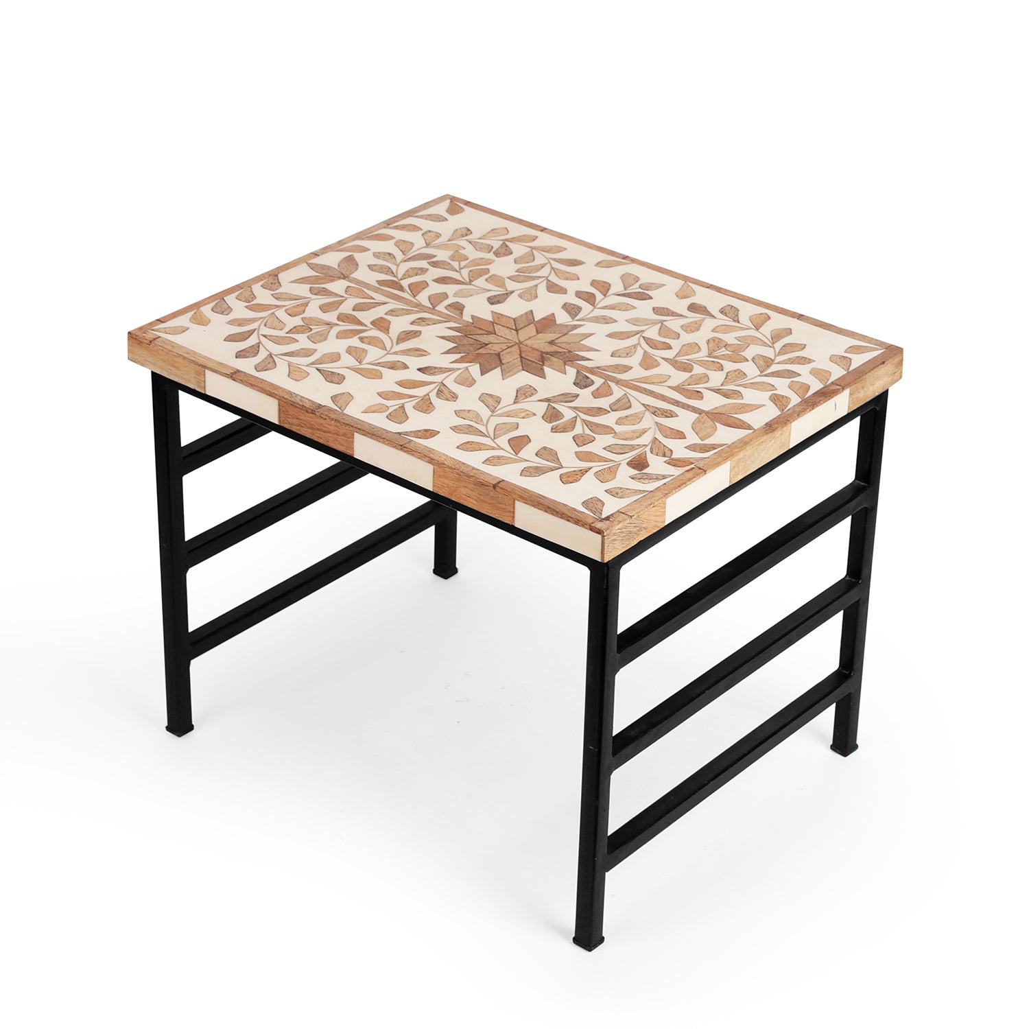 Bone Inlay Top Metal Frame Table | Modern Coffee Table for Living Room