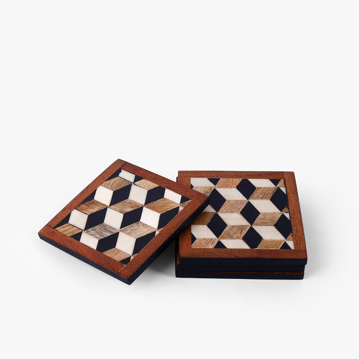 Checker Pattern Wooden Square Coasters – Handcrafted Drink Coasters
