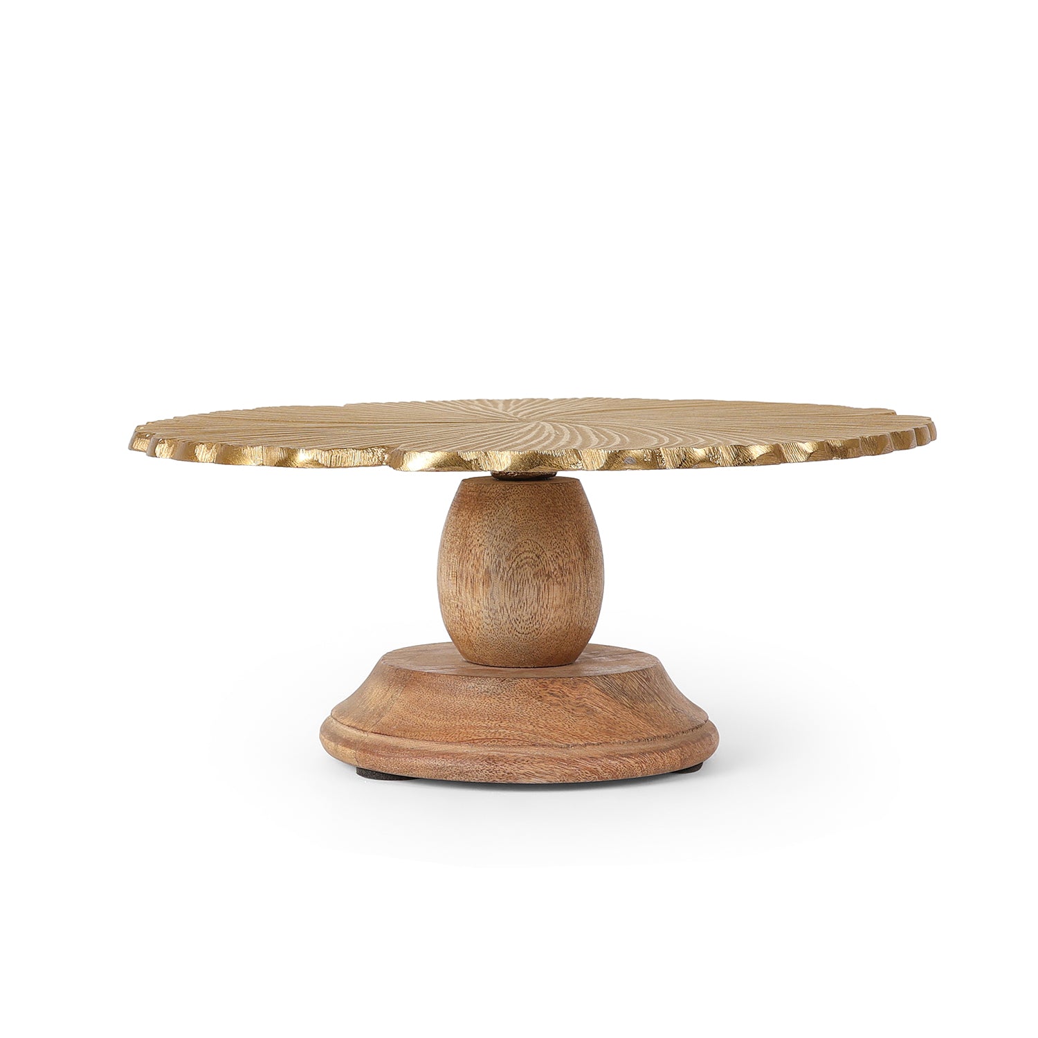 Gold Finish Metal Cake Stand with Wooden Base