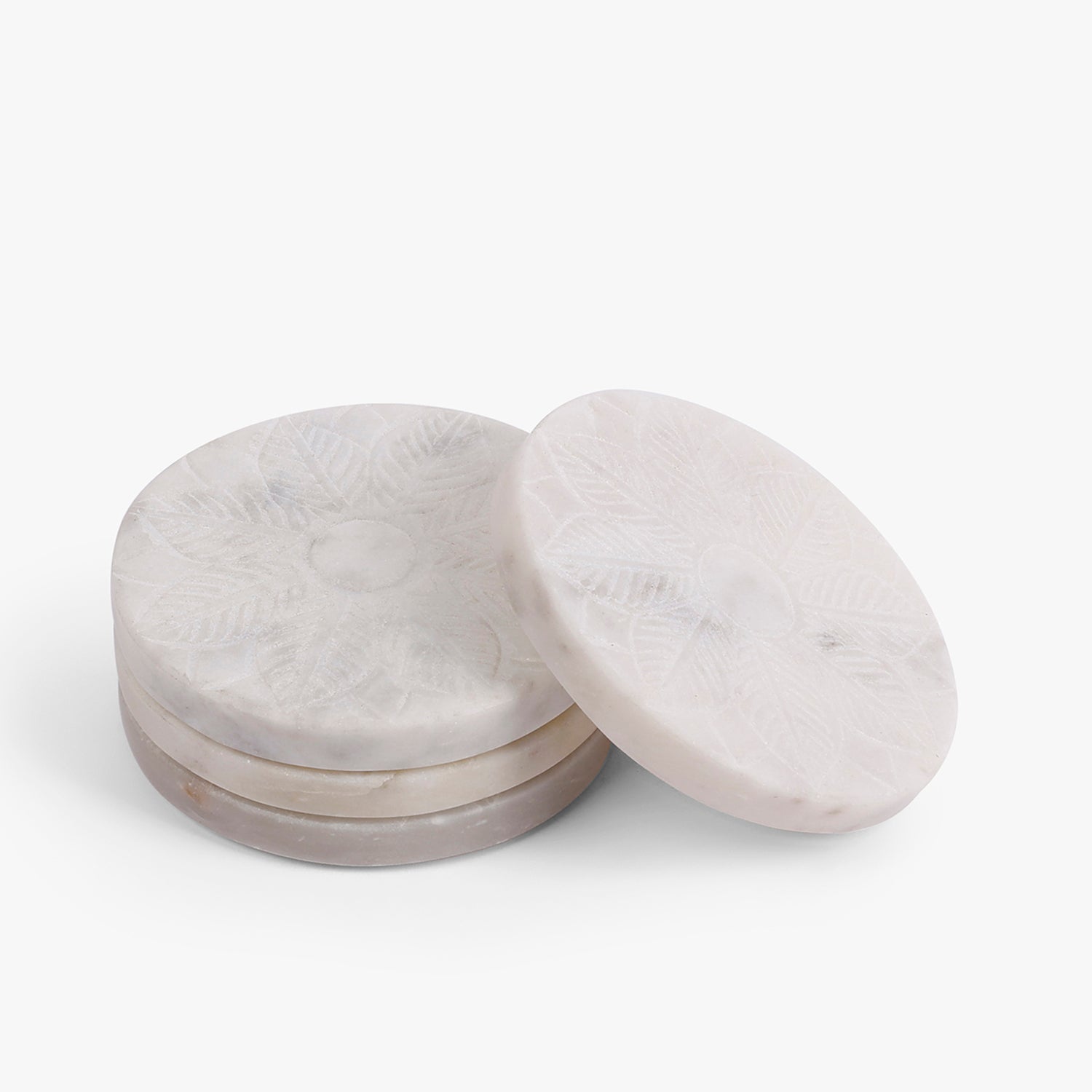 Smooth round coasters made from premium light grey marble. Durable, stylish, and heat-resistant, they complement modern dining tables and coffee spaces while offering reliable surface protection.