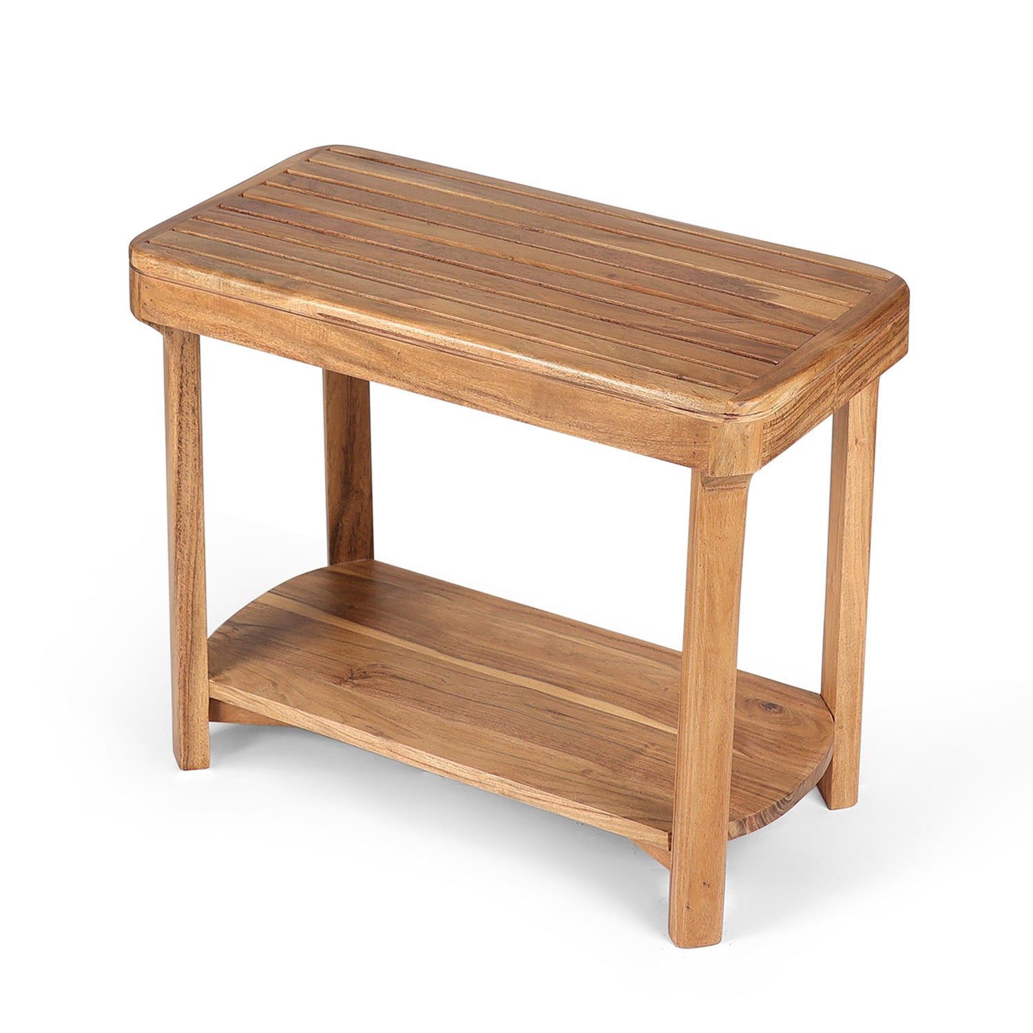 Designed with clean lines, this solid wood side table includes an open lower shelf for easy storage. Its minimalist form and durable construction make it perfect for modern interiors and everyday use.