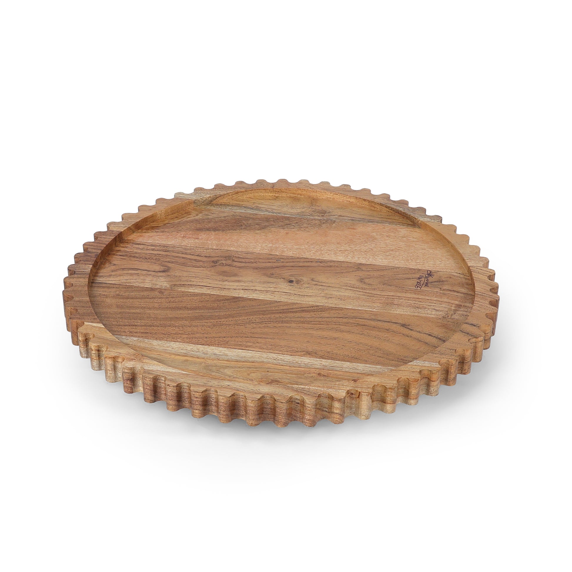 Scalloped Edge Round Wooden Tray