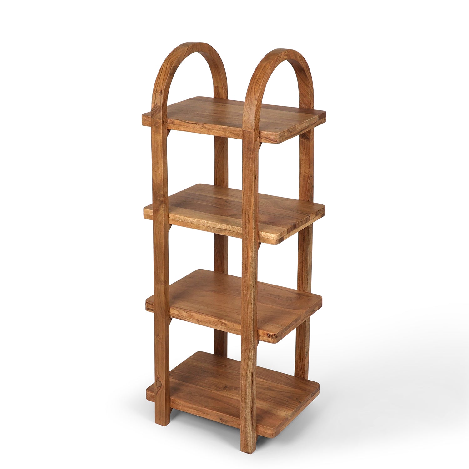 Elegant solid wood rack featuring a unique arched top and open shelves. Adds character while providing vertical storage for décor, books, or everyday essentials.