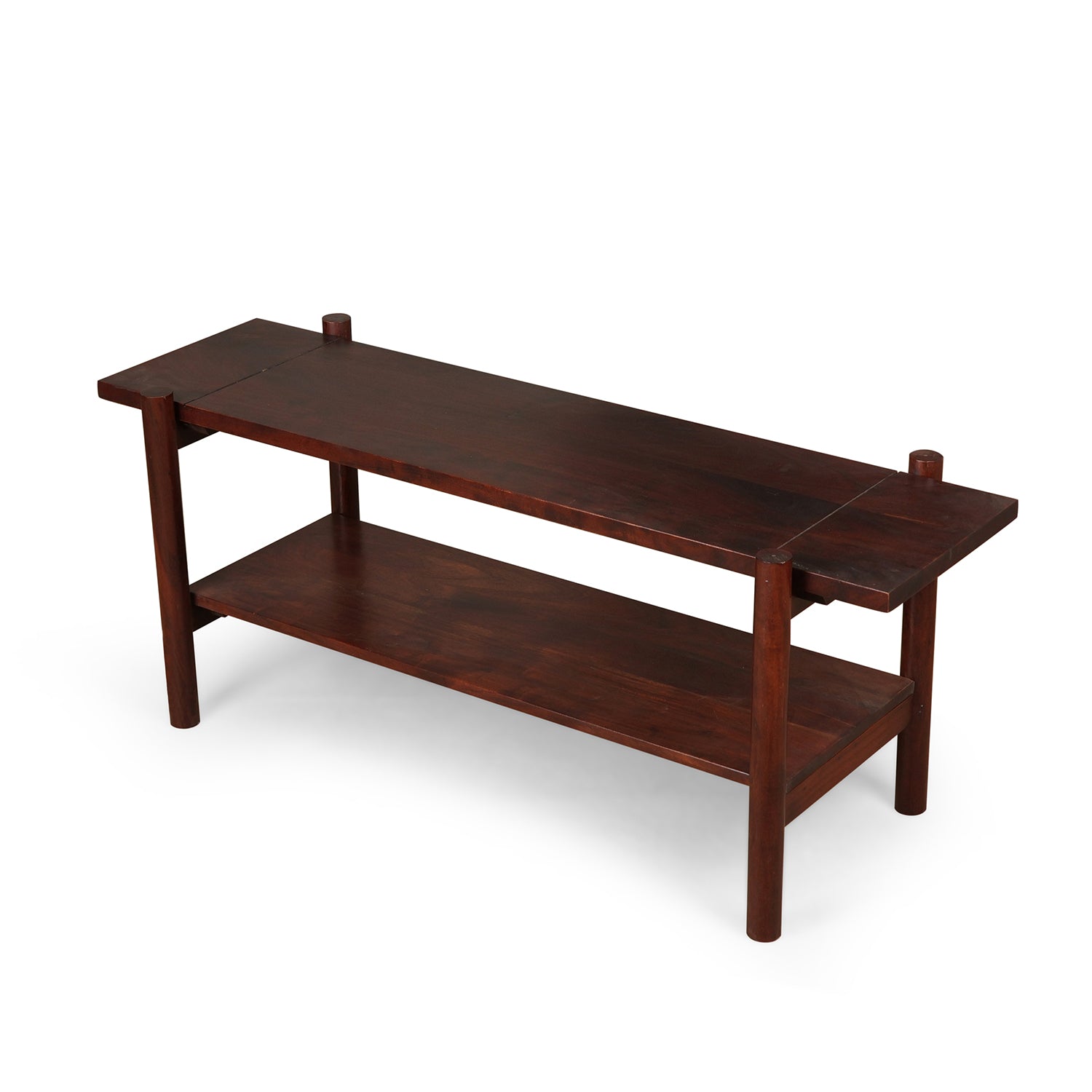 Crafted from solid wood, this console bench features a spacious top and an open lower shelf for added storage. Its sturdy construction and clean silhouette make it ideal for entryways, living rooms, or functional display areas.