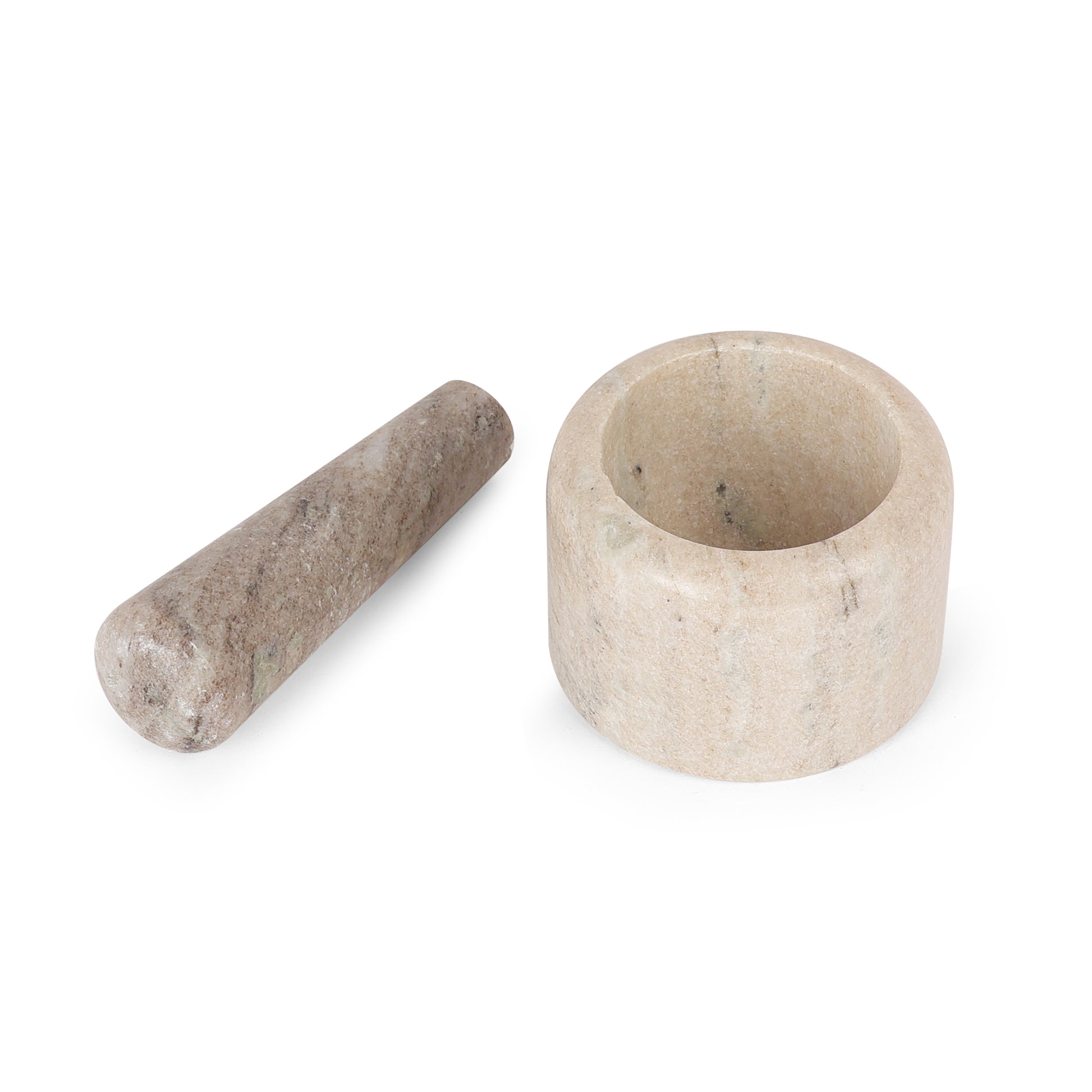 Designer-style white marble mortar and pestle for authentic hand-ground flavour. Crush whole spices and herbs into fresh pastes with better texture. Compact, stable, and ideal for daily cooking, gifting, and countertop styling.